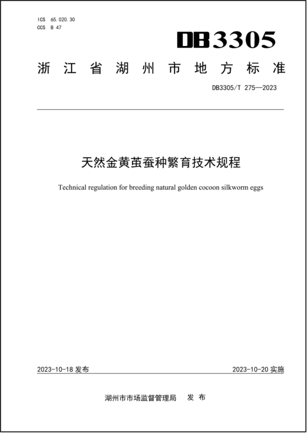 標(biāo)準(zhǔn)是推動(dòng)社會(huì)進(jìn)步、促進(jìn)經(jīng)濟(jì)社會(huì)高質(zhì)量發(fā)展的重要力量。近日,湖州市市場(chǎng)監(jiān)督管理局發(fā)布通告(湖市監(jiān)標(biāo)準(zhǔn)〔2023〕206號(hào)),正式批準(zhǔn)由湖州市農(nóng)業(yè)農(nóng)村局提出、湖州市農(nóng)科院(農(nóng)業(yè)科技發(fā)展中心)起草的地方標(biāo)準(zhǔn)《天然金黃繭蠶種繁育技術(shù)規(guī)程》發(fā)布實(shí)施。
