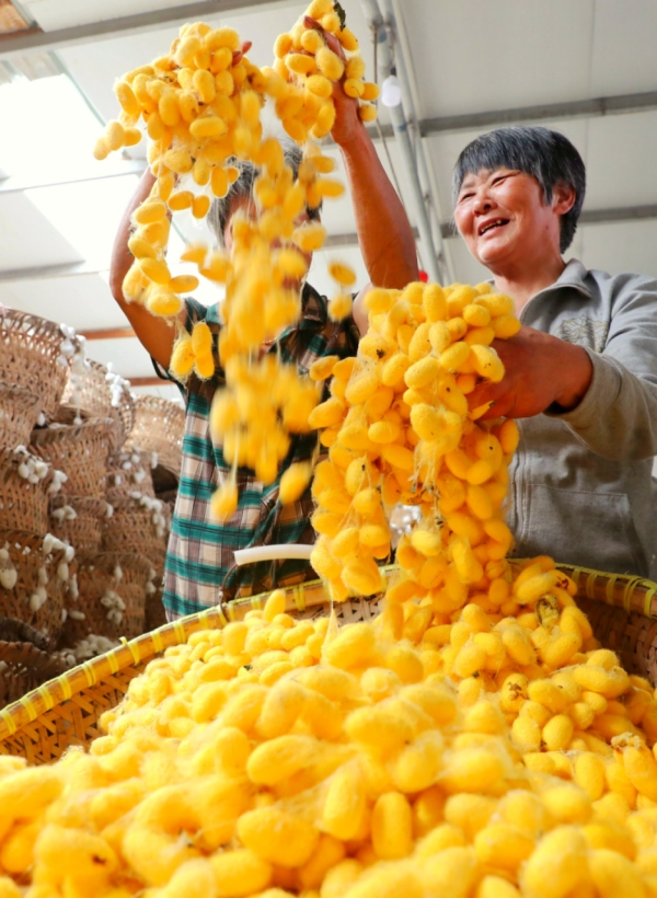 一直以來,市農(nóng)業(yè)農(nóng)村局大力支持蠶桑產(chǎn)業(yè)創(chuàng)新發(fā)展,聚焦家蠶種質(zhì)資源保護(hù)和新品種選育。由市農(nóng)科院蠶桑所自主育成的天然金黃繭新品種“水星1號(hào)”,具有繭色鮮艷穩(wěn)定、強(qiáng)健好養(yǎng)、繭絲質(zhì)性狀優(yōu)良的特點(diǎn),于2019年通過了浙江省農(nóng)作物品種審定委員會(huì)審定。近年來,天然金黃繭蠶品種在全國(guó)各地累計(jì)飼養(yǎng)推廣已達(dá)5萬張,蠶農(nóng)養(yǎng)金黃繭每擔(dān)蠶繭繭價(jià)提高100~300元,增幅10~15%,增產(chǎn)增收十分明顯。