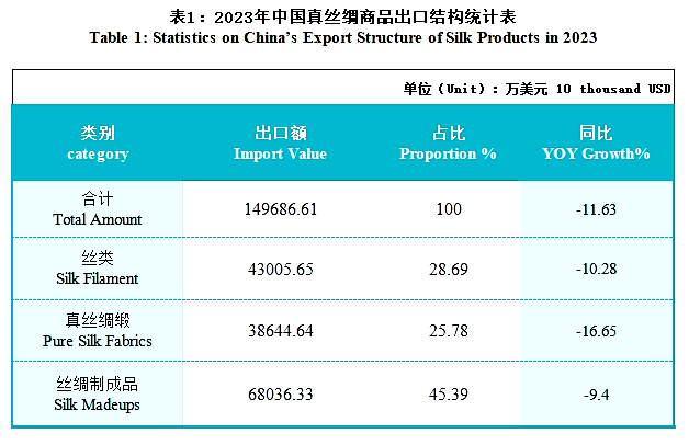2023年中國絲綢商品對外貿(mào)易統(tǒng)計(一)