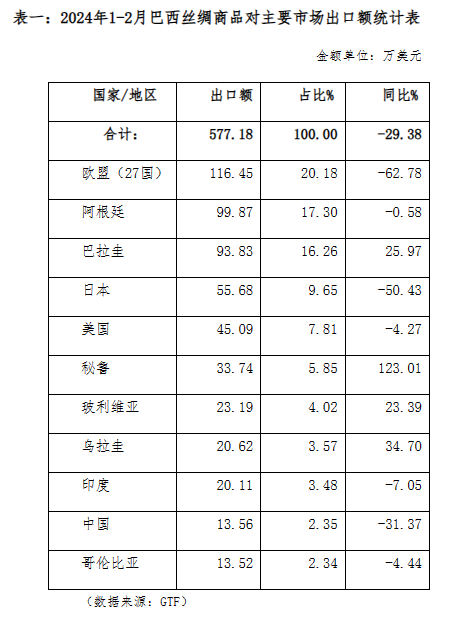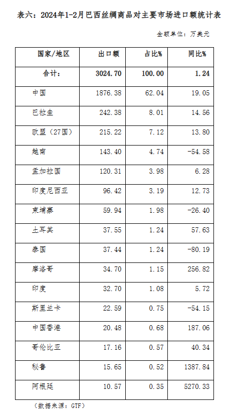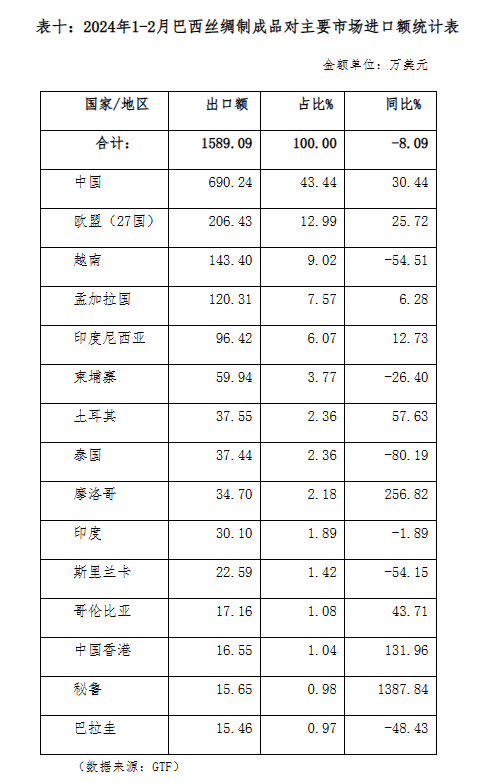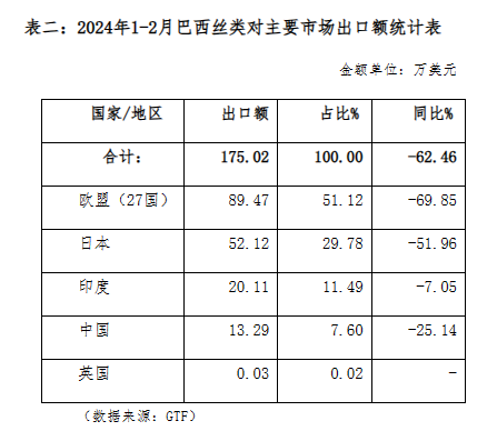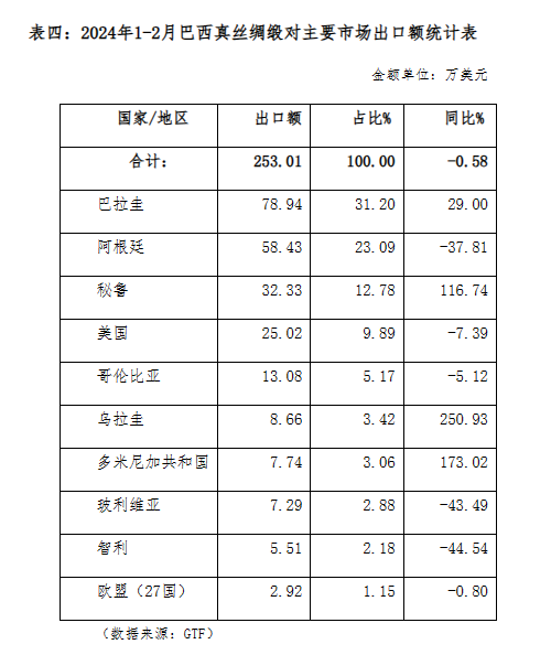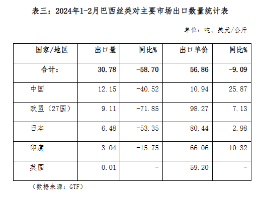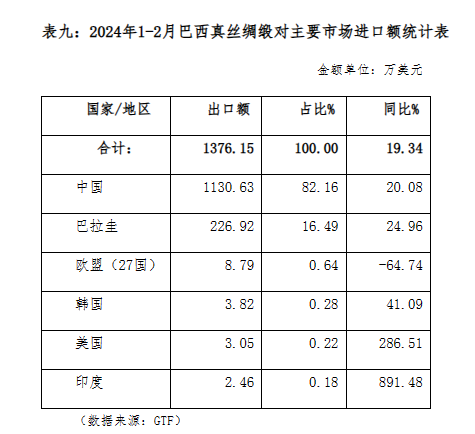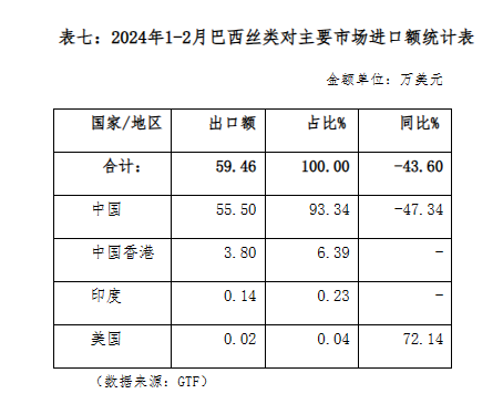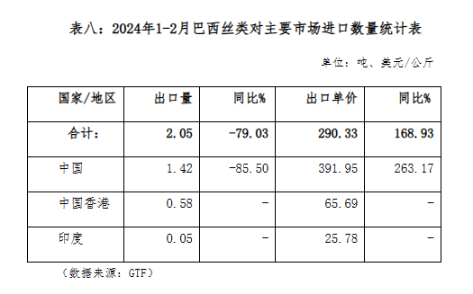 數(shù)據(jù)丨2024年1-2月巴西絲綢商品貿(mào)易統(tǒng)計(jì)簡報(bào)