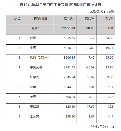從2022年起,韓國超過中國,成為美國綢緞進口第一大來源地。