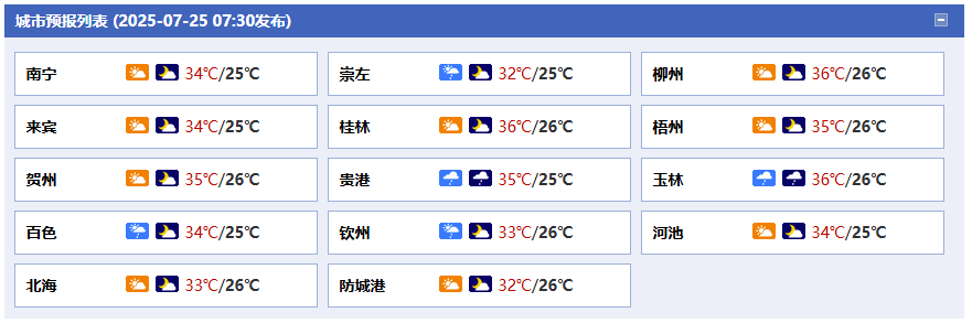 廣西氣象臺(tái)25日05時(shí)發(fā)布預(yù)報(bào):