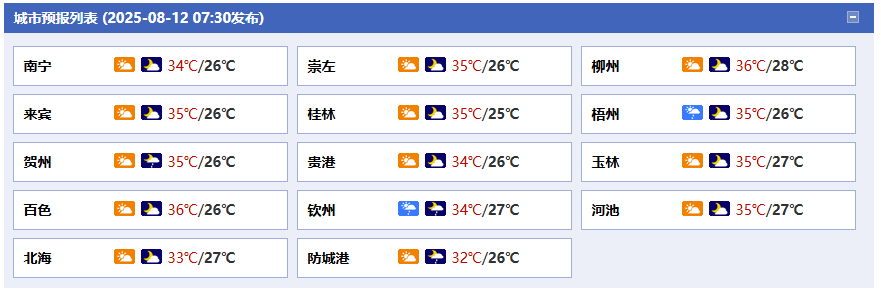 廣西氣象臺12日05時發(fā)布預報: