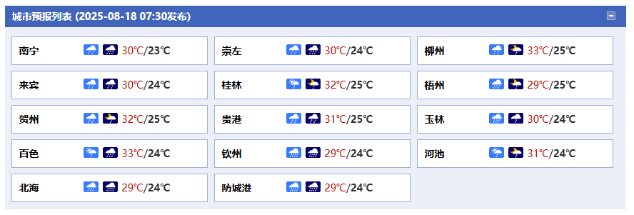 廣西氣象臺(tái)18日05時(shí)發(fā)布預(yù)報(bào):