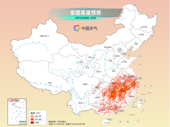 與北方秋涼形成鮮明對比的是,南方暑熱猶存,今天高溫范圍仍然較大,覆蓋重慶、湖北、湖南、江西、安徽南部、江蘇南部、浙江、廣東、廣西等多地。明天開始雖然副熱帶高壓減弱,南方高溫減少,但多地最高氣溫仍將維持在30℃以上,悶熱依舊。