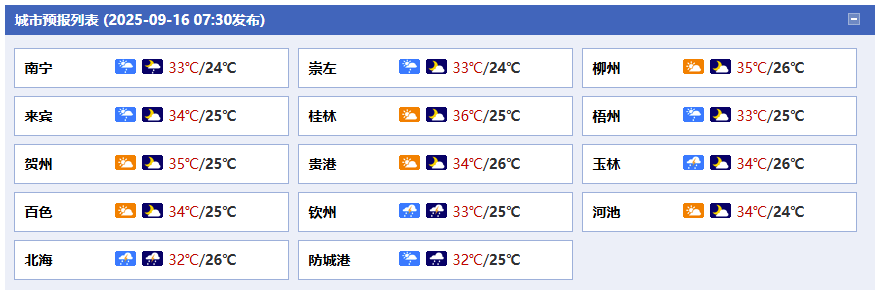 廣西氣象臺(tái)16日05時(shí)發(fā)布預(yù)報(bào):