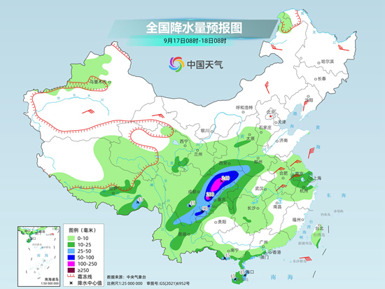 未來三天(9月17日至19日),我國較強降雨主要集中在四川東北部到陜西南部一帶,部分地區(qū)有暴雨。降雨持續(xù)時間較長,將延續(xù)至22日,需注意防范次生災(zāi)害的發(fā)生。隨著下半年首場大范圍冷空氣過程繼續(xù)南下,今明天北方?jīng)鲆鈺黠@加重,南方高溫也將緩解。