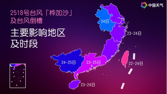 與此同時,今年第18號臺風(fēng)“樺加沙”生成后強度迅速增強,成為今年以來西北太平洋風(fēng)王,目前仍維持超強臺風(fēng)級。預(yù)計,“樺加沙”22日穿過巴士海峽后,將于23日凌晨進(jìn)入南海東北部海面,并逐漸向廣東中西部至海南島東北部一帶沿??拷?。受其影響,今起四天,華南、華東等地將陸續(xù)迎來強風(fēng)雨天氣。