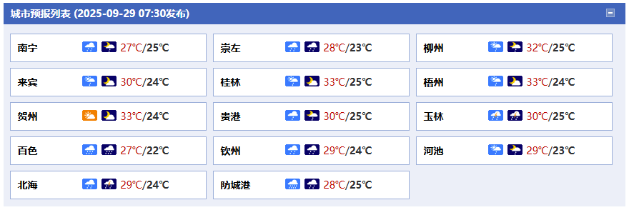 廣西氣象臺(tái)29日05時(shí)發(fā)布預(yù)報(bào):