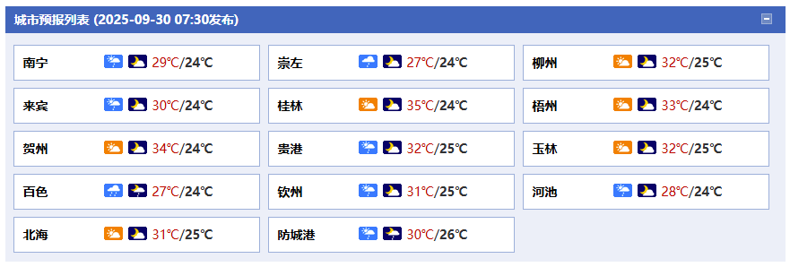 廣西氣象臺(tái)30日05時(shí)發(fā)布預(yù)報(bào):