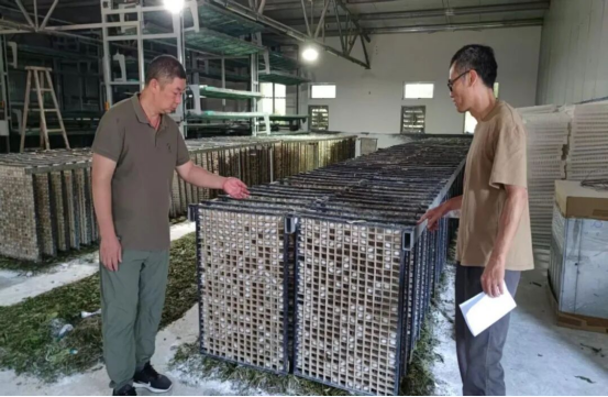 農(nóng)業(yè)專家現(xiàn)場查看325孔方格蔟結(jié)繭情況