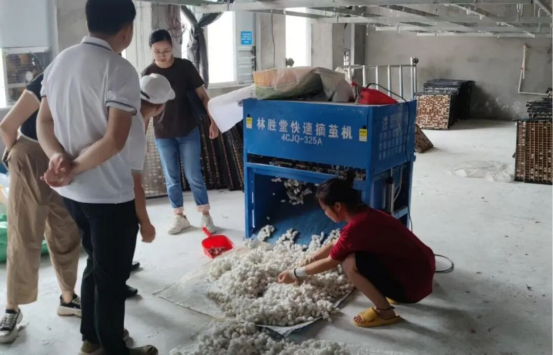 行業(yè)專家現(xiàn)場查看快速摘繭機(jī)使用情況