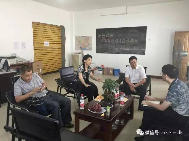 8月3日,廣西出入境檢驗(yàn)檢疫局科技處處長陳愛榮、廣西出入境檢驗(yàn)檢疫局技術(shù)中心副主任羅兆飛、廣西出入境檢驗(yàn)檢疫局國家生絲及絲制品檢測重點(diǎn)實(shí)驗(yàn)室主任郭蔚等一行在宜州市政府蠶桑循環(huán)辦主任覃嘉慶等陪同下,蒞臨中國繭絲綢交易市場廣西辦事處進(jìn)行考察指導(dǎo)。