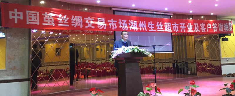晚間,中國繭絲綢交易市場湖州生絲超市開業(yè)暨客戶答謝晚宴隆重舉行。一百多名絲綢企業(yè)家蒞臨現(xiàn)場,氣氛熱烈。晚宴由市場徐錚副總經(jīng)理主持。市場劉卓明總經(jīng)理對大家的到來表示熱烈的歡迎,對絲綢企業(yè)對市場多年的信任和支持表示衷心的感謝。他在致辭中表示,市場設立湖州生絲倉庫有兩個初衷:聚物和聚人。所謂聚物,也就是繭絲綢市場積極利用平臺資源把中西部主產(chǎn)區(qū)的繅絲企業(yè)的產(chǎn)品進行匯集,給大家多一份選擇,讓大家買到最適合自己的產(chǎn)品,從而降低采購成本、縮短采購時間;所謂聚人,就是生絲超市積極打造信息和價格走勢的交流場所,中西部的生產(chǎn)和收購情況傳導給大家,另一方面也把湖州終端信息和流行趨勢反向傳導,實現(xiàn)雙向的交流。劉總希望大家繼續(xù)給與繭絲綢市場支持,市場也會全心全意為大家做好服務工作。