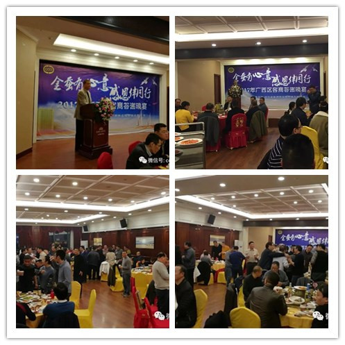 久久聯(lián)合,歲歲相長(zhǎng)。2017年12月18日,中國(guó)繭絲綢交易市場(chǎng)2017年(廣西區(qū))客商答謝晚宴在宜州區(qū)東正國(guó)際大酒店圓滿舉行。答謝晚宴邀請(qǐng)了當(dāng)?shù)叵嚓P(guān)部門領(lǐng)導(dǎo)、百余位廣西區(qū)內(nèi)客商和區(qū)外部分外貿(mào)客商參加。大家歡聚一堂,相互交流、共敘友情。