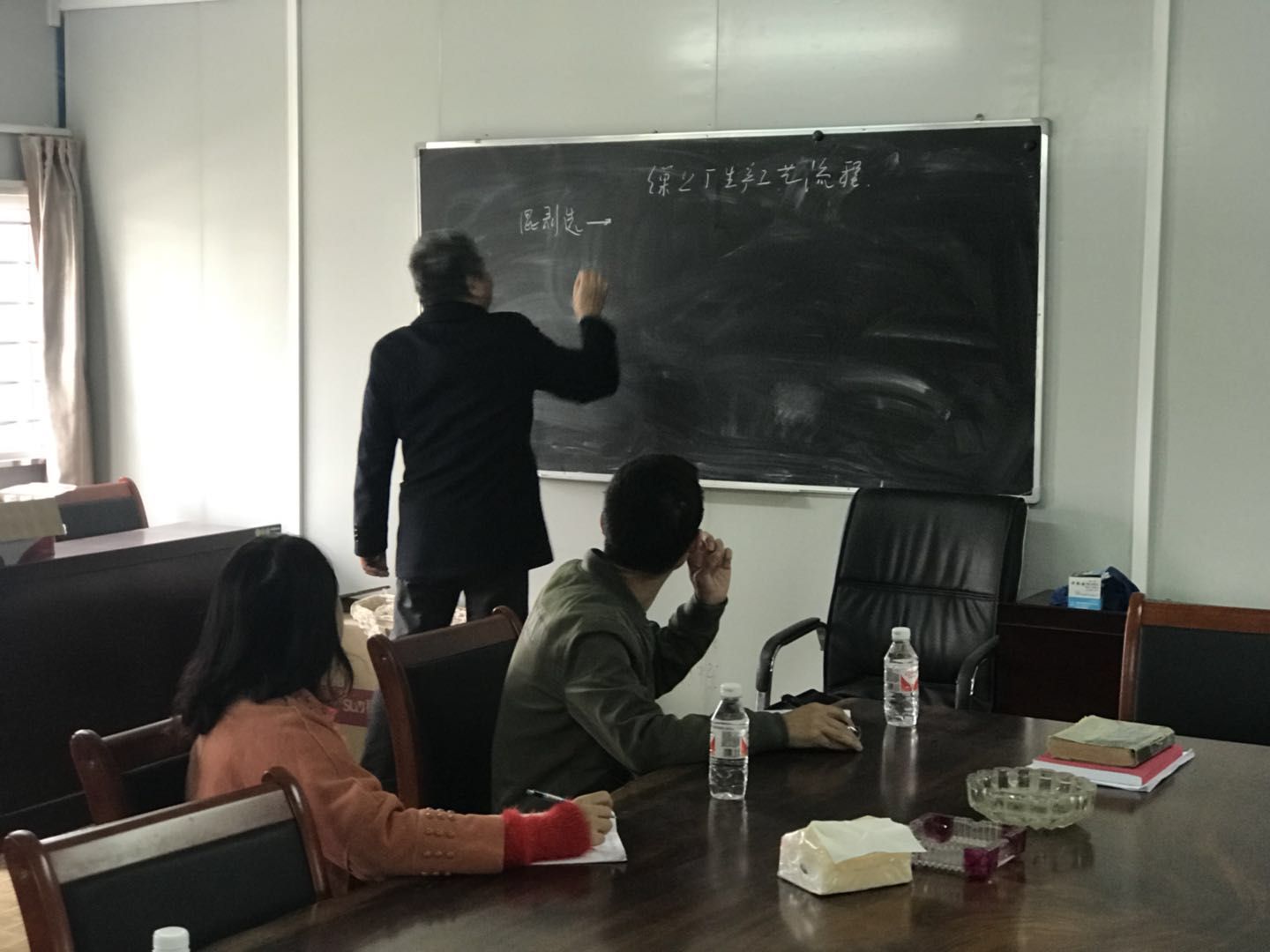 廣辦的員工們聽得都非常認(rèn)真,并且不忘做筆記。上好理論課后,龔廠長帶領(lǐng)大家去生產(chǎn)車間實地參觀了生絲的生產(chǎn)工藝流程,讓大家更加直觀地了解。
