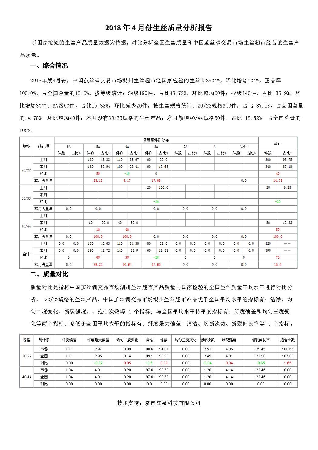 2018 年 4 月份生絲質(zhì)量分析報(bào)告