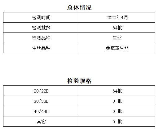 2023年4月中國繭絲綢交易市場湖州生絲超市公檢生絲質(zhì)量分析報告