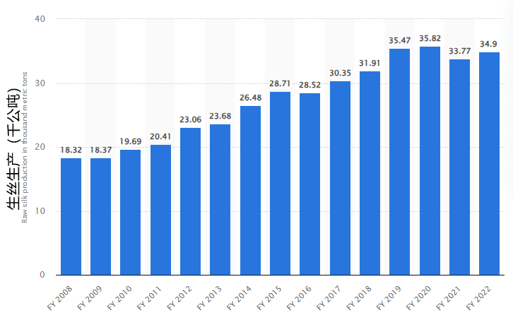 數(shù)據(jù)丨印度2008-2022財(cái)政年度生絲產(chǎn)量(單位:1000公噸)