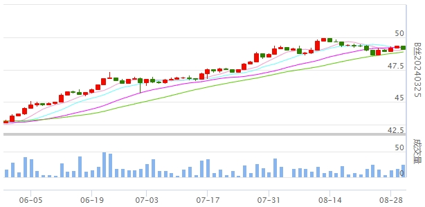 今日(2023年08月30日,周三)中國(guó)繭絲綢交易市場(chǎng)生絲指數(shù)下跌0.17%收于4892.07點(diǎn)。B絲(商檢4A級(jí)生絲):230925合約下跌0.12萬(wàn)元報(bào)收于49.05萬(wàn)元;240325合約下跌0.24萬(wàn)元報(bào)收于49.08萬(wàn)元;240925合約下跌0.30萬(wàn)元報(bào)收于48.18萬(wàn)元。