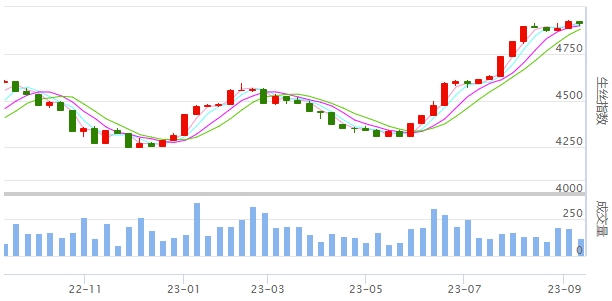 今日(2023年09月15日,周五)中國繭絲綢交易市場生絲指數(shù)微漲0.06%收于4911.97點(diǎn),本周生絲指數(shù)下跌0.31%。B絲(商檢4A級生絲):230925合約報(bào)平收于49.23萬元;240325合約上漲0.15萬元報(bào)收于49.47萬元;240925合約上漲0.12萬元報(bào)收于48.39萬元。230925生絲合約日線