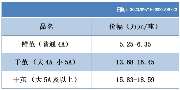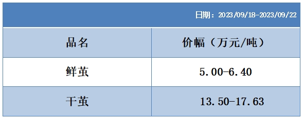 根據(jù)本周蠶繭報價按照指數(shù)方案形成的基準品價格區(qū)間