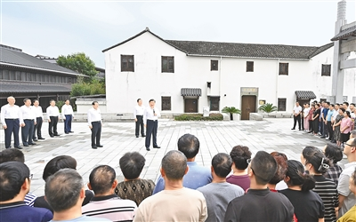 隨后,習(xí)近平乘車來到位于紹興的浙東運河文化園考察。他步行察看古運河河道和周邊歷史文化遺存,詳細(xì)了解浙東運河發(fā)展演變史和當(dāng)?shù)睾侠砝盟Y源、推進(jìn)大運河保護(hù)等情況。習(xí)近平強調(diào),大運河是世界上最長的人工運河,是十分寶貴的文化遺產(chǎn)。大運河文化是中國優(yōu)秀傳統(tǒng)文化的重要組成部分,要在保護(hù)、傳承、利用上下功夫,讓古老大運河煥發(fā)時代新風(fēng)貌。