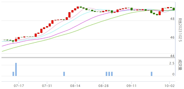 今日(2023年10月08日,周日)中國繭絲綢交易市場生絲指數(shù)下跌0.19%收于4905.17點(diǎn),本周生絲指數(shù)下跌0.47%。B絲(商檢4A級生絲):231025合約下跌0.24萬元報(bào)收于49.14萬元;240325合約上漲0.15萬元報(bào)收于49.38萬元;240925合約上漲0.09萬元報(bào)收于48.27萬元。231025生絲合約日線