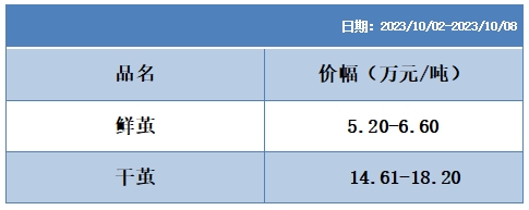 本周高品位生絲協(xié)作單位成交價(jià)格區(qū)間