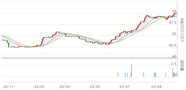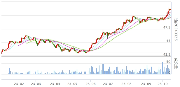 今日(2023年10月18日,周三)中國繭絲綢交易市場生絲指數(shù)微漲0.03%收于5017.19點。B絲(商檢4A級生絲):231025合約報平收于50.10萬元;240325合約上漲0.09萬元報收于51.15萬元;240925合約下跌0.03萬元報收于49.17萬元。