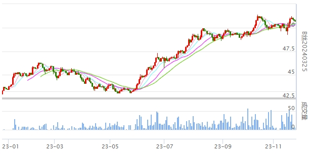 今日(2023年11月24日,周五)中國繭絲綢交易市場生絲指數(shù)收于4975.66點,本周生絲指數(shù)上漲0.39%。B絲(商檢4A級生絲):231225合約報平收于49.95萬元;240325合約下跌0.09萬元報收于50.70萬元;240925合約下跌0.15萬元報收于48.84萬元。今日盤面A絲部分合約價格繼續(xù)小幅上漲。