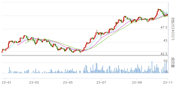 今日(2023年11月01日,周三)中國繭絲綢交易市場生絲指數(shù)上漲0.11%收于4951.97點。B絲(商檢4A級生絲):231125合約上漲0.12萬元報收于49.95萬元;240325合約下跌0.09萬元報收于50.16萬元;240925合約上漲0.03萬元報收于48.42萬元。