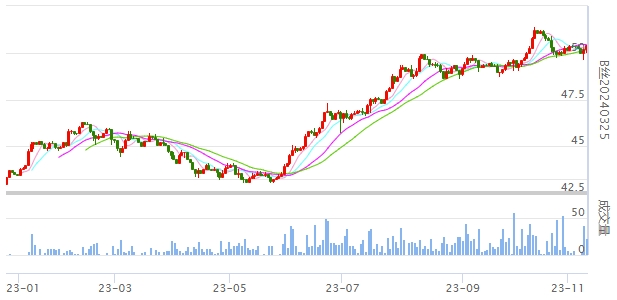 今日(2023年11月10日,周五)中國繭絲綢交易市場生絲指數(shù)上漲0.13%收于4948.31點(diǎn),本周生絲指數(shù)下跌0.12%。B絲(商檢4A級(jí)生絲):231125合約下跌0.03萬元報(bào)收于49.74萬元;240325合約上漲0.18萬元報(bào)收于50.40萬元;240925合約上漲0.03萬元報(bào)收于48.45萬元。231125生絲合約日線