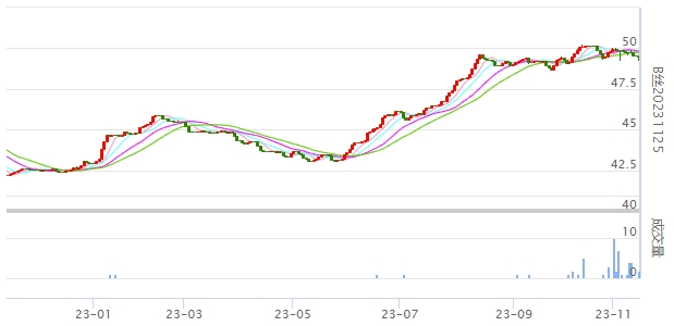今日(2023年11月15日,周三)中國繭絲綢交易市場生絲指數(shù)下跌0.25%收于4913.59點。B絲(商檢4A級生絲):231125合約下跌0.09萬元報收于49.47萬元;240325合約下跌0.33萬元報收于49.68萬元;240925合約下跌0.21萬元報收于47.94萬元。