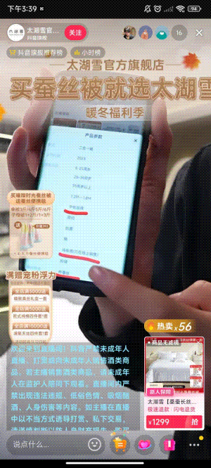 隨著信息技術(shù)和物流的發(fā)展,電商已經(jīng)成為了一種重要的銷(xiāo)售途徑,其中直播帶貨也已成為了時(shí)下最為時(shí)髦的一種銷(xiāo)售方式。10月后,是絲綿被的慣例銷(xiāo)售旺季。近日來(lái),在抖音平臺(tái)上包括太湖雪、羅萊、水星等在內(nèi)的多家絲綿被廠家都在進(jìn)行著直播帶貨,線(xiàn)下+線(xiàn)上(直播)的新模式在絲綢行業(yè)中的發(fā)展己經(jīng)漸成主流。