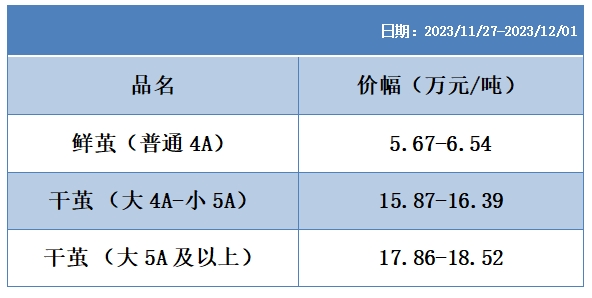 絲收儲(chǔ)按照程序進(jìn)行。本周前期為中央儲(chǔ)備生絲收儲(chǔ)潛在投標(biāo)企業(yè)名單公示期。2023年11月27日至11月29日在商務(wù)部市場(chǎng)運(yùn)行和消費(fèi)促進(jìn)司(國(guó)家繭絲辦)網(wǎng)站進(jìn)行公示后,進(jìn)入投標(biāo)報(bào)價(jià)及遞交環(huán)節(jié)。友情提醒:投標(biāo)單位應(yīng)于2023年12月8日15:00前,按每個(gè)標(biāo)的6萬(wàn)元人民幣(陸萬(wàn)元人民幣)的標(biāo)準(zhǔn)將投標(biāo)保證金匯至北京中絲誠(chéng)業(yè)物資有限公司設(shè)立的專戶。