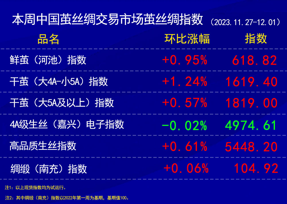 本周中國(guó)繭絲綢交易市場(chǎng)繭絲綢指數(shù)