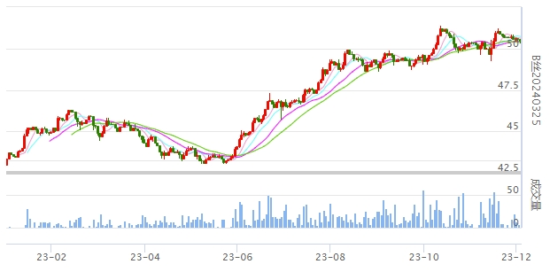 今日(2023年12月05日,周二)中國繭絲綢交易市場生絲指數(shù)微跌0.06%收于4968.62點(diǎn)。B絲(商檢4A級生絲):231225合約下跌0.03萬元報(bào)收于49.71萬元;240325合約下跌0.09萬元報(bào)收于50.46萬元;240925合約報(bào)平收于49.11萬元。