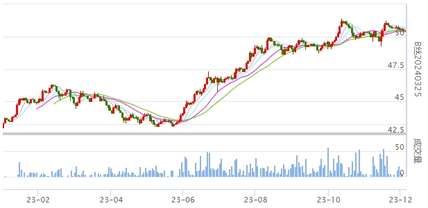 今日(2023年12月06日,周三)中國繭絲綢交易市場生絲指數(shù)微跌0.07%收于4965.04點(diǎn)。B絲(商檢4A級生絲):231225合約下跌0.06萬元報(bào)收于49.65萬元;240325合約上漲0.03萬元報(bào)收于50.49萬元;240925合約下跌0.03萬元報(bào)收于49.08萬元。