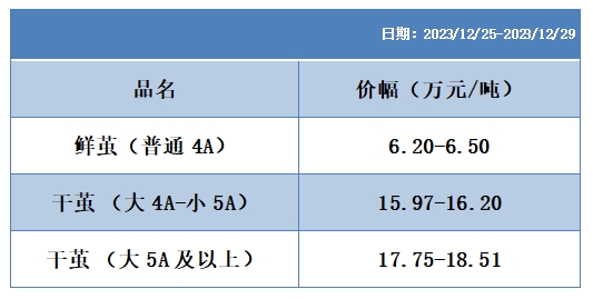根據(jù)本周蠶繭報價按照指數(shù)方案形成的基準品價格區(qū)間