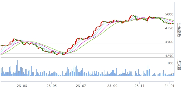 今日(2024年01月10日,周三)中國繭絲綢交易市場生絲指數(shù)上漲0.15%收于4862.70點。B絲(商檢4A級生絲):240125合約上漲0.09萬元收于48.93萬元;240325合約上漲0.15萬元收于49.35萬元;240925合約上漲0.12萬元收于48.00萬元。