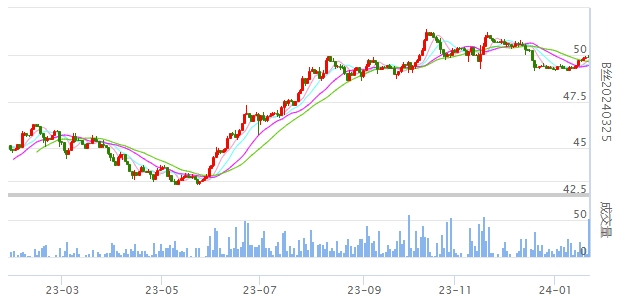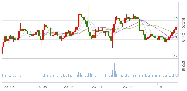 今日(2024年01月22日,周一)中國繭絲綢交易市場生絲指數(shù)上漲0.22%收于4948.28點(diǎn)。B絲(商檢4A級生絲):240125合約上漲0.15萬元報收于49.86萬元;240325合約報平收于49.89萬元;240925合約上漲0.03萬元報收于48.69萬元。