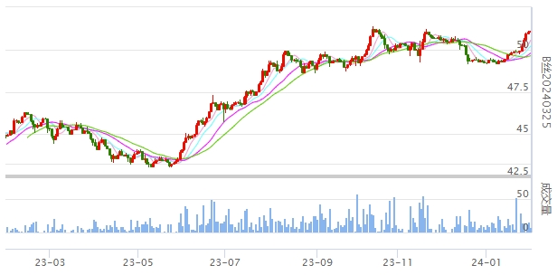 今日(2024年01月31日,周三)中國繭絲綢交易市場(chǎng)生絲指數(shù)微跌0.09%報(bào)5031.79點(diǎn),本月生絲指數(shù)上漲3.39%。B絲(商檢4A級(jí)生絲):240325合約上漲0.03萬元報(bào)收于51.09萬元;240925合約下跌0.24萬元報(bào)收于49.26萬元;250325合約下跌0.21萬元報(bào)收于49.41萬元。