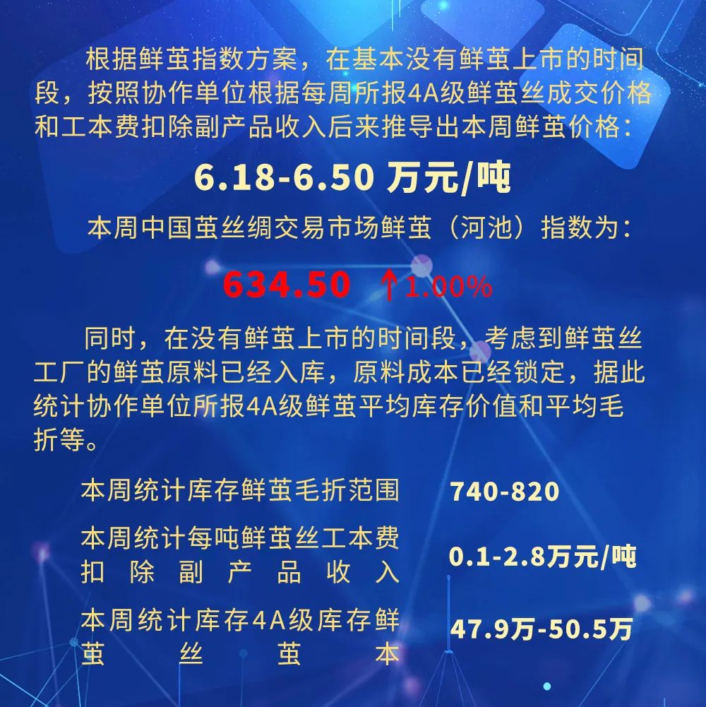 鮮繭指數(shù)上,根據(jù)協(xié)作單位所報(bào)數(shù)據(jù)倒推,指數(shù)繼續(xù)有所上行。