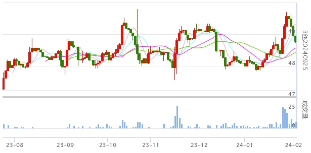 今日(2024年02月02日,周五)中國繭絲綢交易市場生絲指數(shù)下跌0.33%報5000.32點。B絲(商檢4A級生絲):240325合約下跌0.09萬元報收于50.88萬元;240925合約下跌0.18萬元報收于48.78萬元;250325合約下跌0.06萬元報收于48.99萬元。