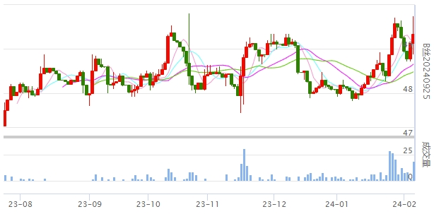 今日(2024年02月05日,周一)中國繭絲綢交易市場生絲指數(shù)上漲0.57%報5048.84點。B絲(商檢4A級生絲):240325合約上漲0.27萬元報收于51.51萬元;240925合約上漲0.21萬元報收于49.35萬元;250325合約上漲0.36萬元報收于49.35萬元。