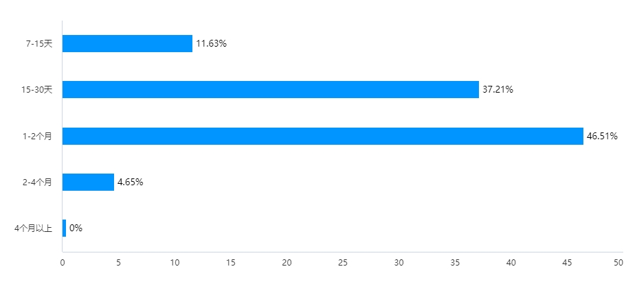 選擇15-30天的為16家,占比為37.21%;