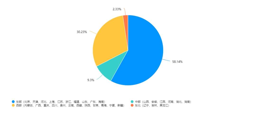 東部企業(yè)25家,占比為58.14%;