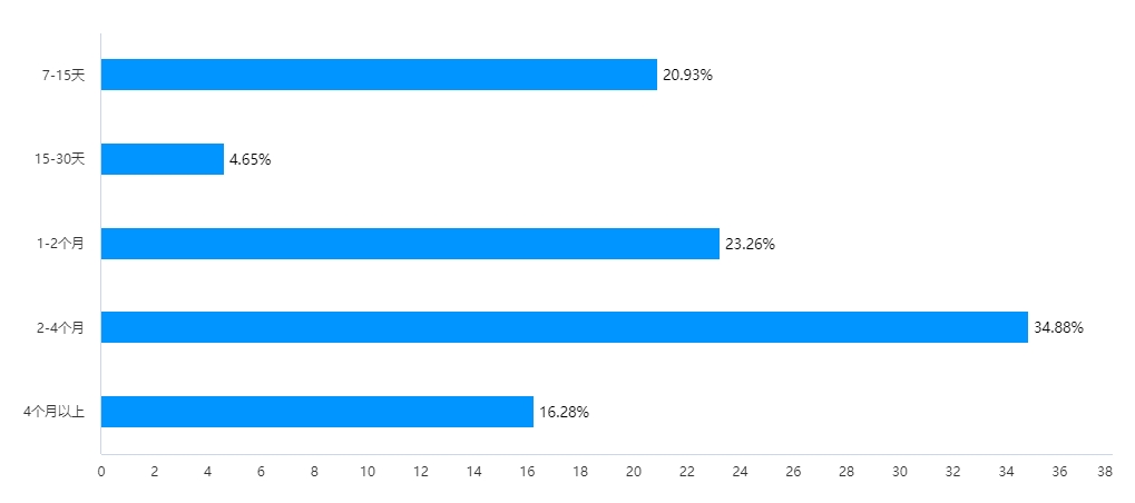 選擇2-4個月的為15家,占比為34.88%;