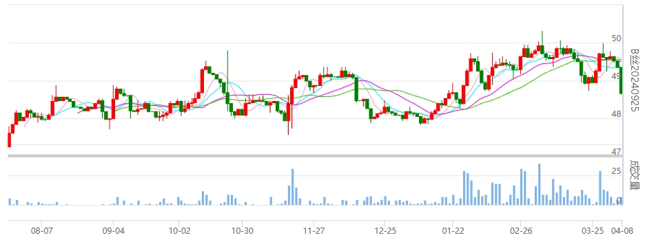 今日(2024年04月07日,周日)中國繭絲綢交易市場生絲指數(shù)下跌1.01%收于4927.10點,本周生絲指數(shù)下跌1.06%。B絲(商檢4A級生絲):240425合約下跌0.45萬元報收于48.96萬元;240925合約下跌0.69萬元報收于48.66萬元;250325合約下跌0.69萬元報收于49.17萬元。